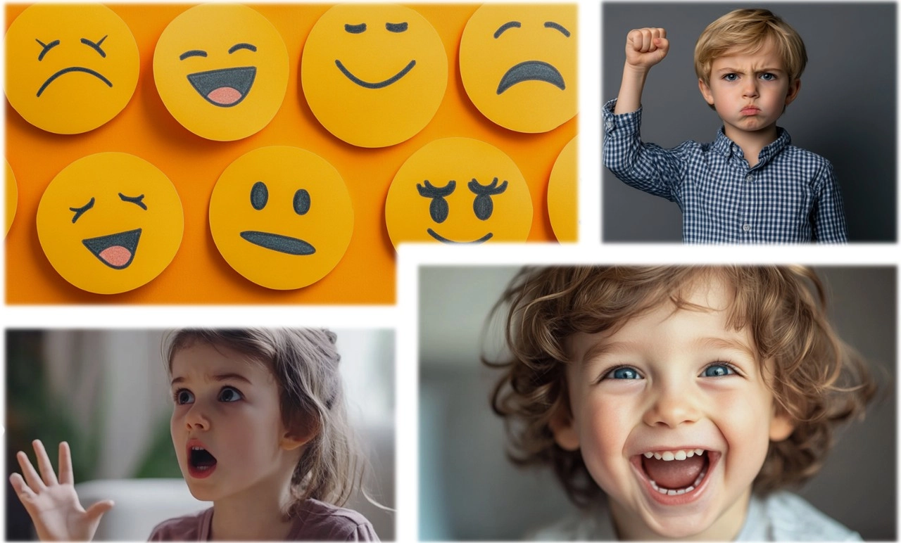 Чрез игрови упражнения, движение, мимики, кратки истории и творчески дейности децата се запознават с основни емоции като радост, тъга, гняв, страх и изненада. Полезно е използването на огледало, за правилно свързване на чувствата с мимиките и образите, и разпознаването им в лицата на другите. В игрова среда групата имитира телесно различни емоционални състояния, обсъжда ситуации от ежедневието, а децата споделят личен опит. Акцентът е поставен върху осъзнаването, че всички емоции са естествени и важни, както и върху това как можем да ги изразяваме спокойно и безопасно.