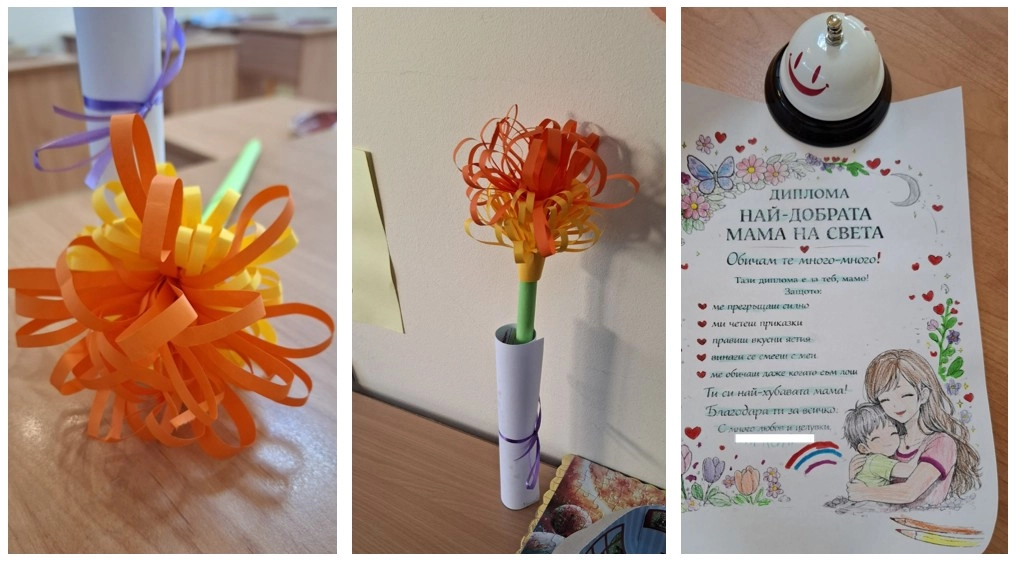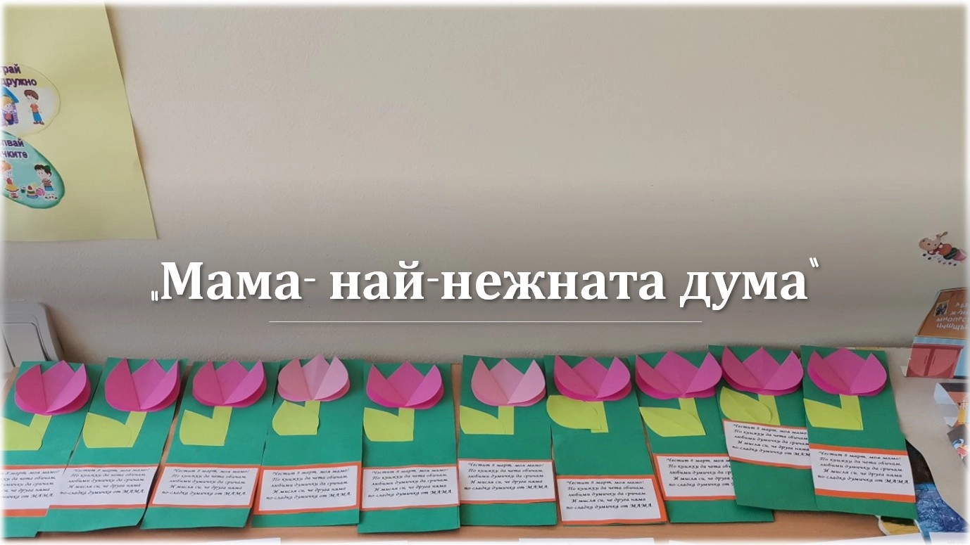 Децата разказват какво обичат да правят с майките си, как те им помагат и кога се чувстват най-обичани. В ролеви игри те пресъздават ежедневни ситуации - прегръдка, помощ, утеха, празник. Чрез творчески задачи като изработка на рисунки, картички и цветя децата материализират изпитваната от тях благодарност и любов. Поставяме акцент върху преживяването на положителни емоции и осъзнаването колко важни за нас са близките хора.